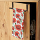 Serviette à main dans un motif délicat de coquelicots rouges vibrants avec des tiges vertes profondes et des feuilles, sur un certain temps arrière - plan, avec, chaque fleur de pavot unique courbé et tordu, comme si se balançant doucement dans la brise.