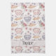 Brighten up your kitchen décor with this absorbent, personalized tea towel! It features the adorable, all-over kawaii pattern of smiling baking bowls and rolling pins set against pink and white stripes. Customize this beautiful design with your family name or "Happy Kitchen" for a thoughtful hostess or housewarming gift. The cute aesthetic of this towel coordinates perfectly with the Mommy & Me apron collection.