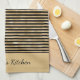 Torchon de cuisine rayé noir et or. Très tendance, élégant et chic. Personnalisez-le avec votre nom ou n'importe quel texte.