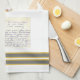 Cette serviette de cuisine a un élégant espace ovale pour ajouter une photo et une image de recette avec des rayures à chaque extrémité. Un moyen parfait de commémorer une recette chère et d'honorer un être cher.