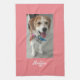 Personnalisez cette serviette avec la photo et le nom de votre animal de compagnie (ou la photo et le nom de l'enfant) et profitez de leur photo tous les jours. Peach arrière - plan and white text. Vient en plusieurs couleurs. Cliquez sur "Personnaliser" pour modifier les couleurs et les styles de type.