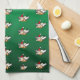 Le Funny & mignon Flying Pig sur une serviette de cuisine verte.
