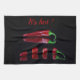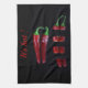 Serviette de cuisine accrocheuse avec piment rouge chaud sur un arrière - plan noir. Le texte est personnalisable.