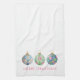 Cette serviette de cuisine de vacances personnalisée dispose de trois beaux ornements de Noël bleu marine, rose et vert chinoiserie. Personnalisez avec votre choix de message spécial de vacances.