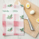 A pink and red checked (gingham) watercolor pattern makes this holiday plaid kitchen towel look very special for your holiday use yourself or as a nice gift. The seasonal colors this plaid design let you know Christmas is here. "Merry Christmas". The red berries and green holly are cute holiday accents. Be sure to edit the family name and the date. You may want to edit the name and date to change it to a personal name.