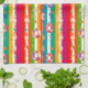 Belle et gaie thème de plage avec rayures colorées, bouées de sauvetage, tuba et créatures marines. Un design estival festif idéal pour la décoration, les thèmes de vacances ou les invitations tropicales à des fêtes.
