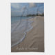 La serviette de cuisine personnalisée est un cadeau populaire de pendaison de crémaillère ou de mariage pour n'importe qui. La conception est une plage assez sablonneuse avec l'océan bleu sur le rivage ensoleillé.