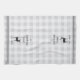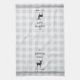 Customisez votre cuisine avec cette mignonne serviette personnalisée avec votre nom de famille ou nom de maison et année établie en lettres grises au charbon de bois, accentuée avec une illustration de cerf sur un arrière - plan tonal plaid.
