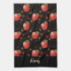 Linge De Cuisine Pommes rouges et feuilles sur noir