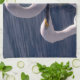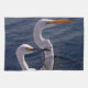 Cette serviette de cuisine présente une photo originale de ZoeSPEAK de deux oiseaux blancs à cou long posés sur les eaux bleues profondes du golfe du Mexique. L'oiseau avec le long bec noir pointu est un feu enneigé. L'oiseau avec le long bec jaune orangé pointu est un grand egret.
