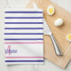 Linge De Cuisine Preppy Pink and Navy Blue Stripe Simple Monogram