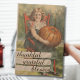 Une carte de Thanksgiving intemporelle et tendance présentant l'œuvre de 1899 "Fille sur une chaise rouge avec une citrouille" de Fair Pub. House. Parfaite pour ceux qui aiment le charme vintage avec une touche moderne. Vous pouvez facilement personnaliser cette carte avec votre propre texte et vos vœux chaleureux de vacances, ce qui en fait une façon attentionnée de célébrer la saison de gratitude.