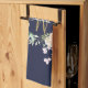 Linge De Cuisine Rose Floral Gold Script Monogramme Marine Bleu