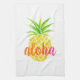 Cet amusement, serviette de cuisine vibrante comporte un ananas coloré d'aquarelle avec le ` d'expression Aloha' dans l'ombre rose et orange. L'accent décoratif parfait pour votre cuisine cet été.