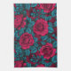 Motif vectoriel à main avec roses rouges avec feuilles bleus
