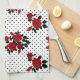 Linge De Cuisine Roses rouges sur un arrière - plan à pois de polka