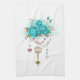 Linge De Cuisine Roses turquoise avec touches