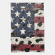 Distressed American flag with bold leopard print overlay on rustic wood texture. Ideal for patriotic women, country style lovers, and those who love bold USA-inspired kitchen towel.