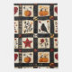 Cette serviette de cuisine présente un motif rustique d'inspiration courtepointue disposé en carré et en blocs rectangulaires aux motifs d'automne chauds. Le patchwork est composé de citrouille, d'un oiseau noir au sein rougeâtre, de coeurs, d'étoiles rouges et de branches florales aux tons terreux de rouge, d'orange et de marron. Les accents géométriques comme les textures plaid et croix-couture ajoutent à l'atmosphère faite à la main. Avec une esthétique de ferme douillette dans les tons noir, crème et automne, ce motif est parfait pour la décoration d'automne, style champêtre primitif et le charme rustique de saison de récolte.