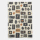 Earthy geometric pattern kitchen towel inspired by tribal mudcloth textiles, featuring hand-painted rectangles, diamonds, and triangles in charcoal black and terracotta on a textured beige background. A warm boho design ideal for rustic décor lovers, artisan style fans, and anyone drawn to earthy geometric aesthetics.