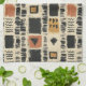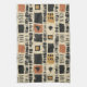 Earthy geometric pattern kitchen towel inspired by tribal mudcloth textiles, featuring hand-painted rectangles, diamonds, and triangles in charcoal black and terracotta on a textured beige background. A warm boho design ideal for rustic décor lovers, artisan style fans, and anyone drawn to earthy geometric aesthetics.