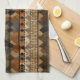 Warm geometric stripe pattern kitchen towel featuring tribal-inspired diamonds, zigzags, and textured vertical bands in earthy brown, terracotta, tan, beige, and charcoal tones. A cozy boho design ideal for southwestern décor lovers, rustic style fans, and anyone drawn to earthy, handcrafted aesthetics.