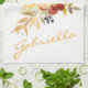 Cette belle serviette de cuisine en tissu présente un bouquet floral aquarelle élégant dans une palette de couleurs automnales chaudes et cosy. Personnalisez-la avec votre nom dans une typographie script tendance. Excellente idée cadeau !
