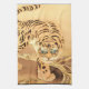 Un "Minhwa" représente le folklore coréen créé par des artistes inconnus au fil des siècles. Le tigre est une figure associée à la culture coréenne et un animal laid ou mal formé peut représenter des aristocrates stupides ou corrompus selon la légende. Cette peinture vintage représente un tigre de minhwa rayé par un ruisseau.
