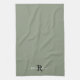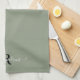 Monogramme vert Sage moderne Script Nom initial serviette de cuisine