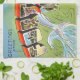 Une fantastique carte postale vintage en lin de Fort Myers, Floride, réutilisée sur un torchon de cuisine / bar. Quel beau cadeau !