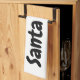 Ce design de Noël amusant présente du texte rétro SANTA CLAUS à l'intérieur d'une large bande blanche centrale surlignée de rayures noires contre rayures extérieures bleu ciel brillant.