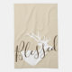 Silhouette de cerf blanc rustique et serviette de cuisine taupe "bienheureuse".