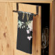Linge De Cuisine Script Rose Floral Monogramme Or Noir