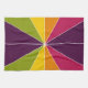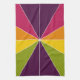 Un design avec des segments de 12 x 30 degrés chacun divisé avec une ligne blanche et dans une palette de 5 couleurs avec des segments contigus en haut et en bas en utilisant la même couleur créant une symétrie.