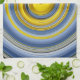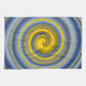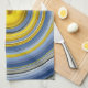 Une spirale jaune-bleu avec de fines lignes grises et noires est la conception de cette feuille de cuisine.