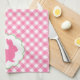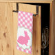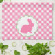 La silhouette d'un lapin rose mignon se repose à l'intérieur d'un cadre de fleur blanche avec une frontière de vert de ressort. Les contrôles doux, roses et blancs de guingan composent l'arrière - plan.