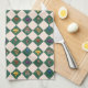 A simple pattern of green checks and mushrooms. Hand drawn.