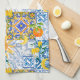 Linge De Cuisine soleil méditerranéen, fleurs, citron, moitié lune,