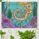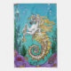Tableau aquarelle d'origine par Sandra Gale d'un imaginaire cheval de mer doré flottant au-dessus d'un récif tropical sous la mer. Grande image pour les enfants, les ados et tous ceux qui aiment les chevaux de mer et l'océan. Un design de salle de bain génial aussi !