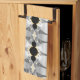 Cette belle serviette de cuisine présente de l'art fractal symétrique en argent faux métallique avec des accents d'or.