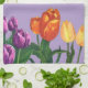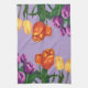 Bring spring tulips into your kitchen with this watercolor cloth. Set on a rich lavender background, purple, orange, and light yellow tulips shine as they provide accent and beauty to your most-used space.
