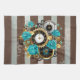 Linge De Cuisine Steampunk Clock and Turquoise Roses on Striped