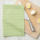 Kitchen towel is shown in a lime and white striped print.