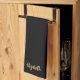 Custom Calligraphy Script Name Upload Photo or Logo Text Elegant Modern Cute Black And Gold Kitchen & Dining / Table & Kitchen Linens/ Personalized Template Calligraphy Gold Name Black Kitchen Towel.