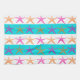Eté Plage Thème Starfish sur les bandes Turquoises. Ce design amusant à thème de plage d'été présente des étoiles de mer orange et rose chaud sur un arrière - plan de bandes turquoises bleu et blanc. Une combinaison de couleurs parfaite pour l'été !