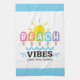 Celebrate summer and lazy days at the seashore with this customizable kitchen towel that features a charming illustration of popsicles that spell out the word, "Beach," a radiating sun, ocean waves, and script typography that says, "Vibes." This playful design includes an editable text placeholder that says, "Chef's Gone Coastal," that's perfect for adding a family name or your own sentiment. Whether you're gifting this tea towel to a new homeowner or accessorizing your own beach house, this coastal design will add tropical beach vibes to any occasion.