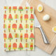 Cute digital repeat pattern of ice lollies in bright summery colors on colorful kitchen towel.