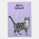 Linge De Cuisine Tabby Cat Merry Christmas Purple Lavender Pastel