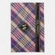 Design écossais violet, jaune doré et bleu. Motif sans couture. Texte et monogramme personnalisés.