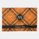 Échantillon de tartan moderne orange et noir halloween. Texte et monogramme personnalisés.